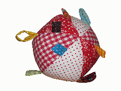 Gerne nähe ich Ihnen einen Ball nach Ihren Wünschen (bzw. die des zukünftigen Spielers): teilen Sie mir einfach mit, welche Farben, Muster und welche Größe.